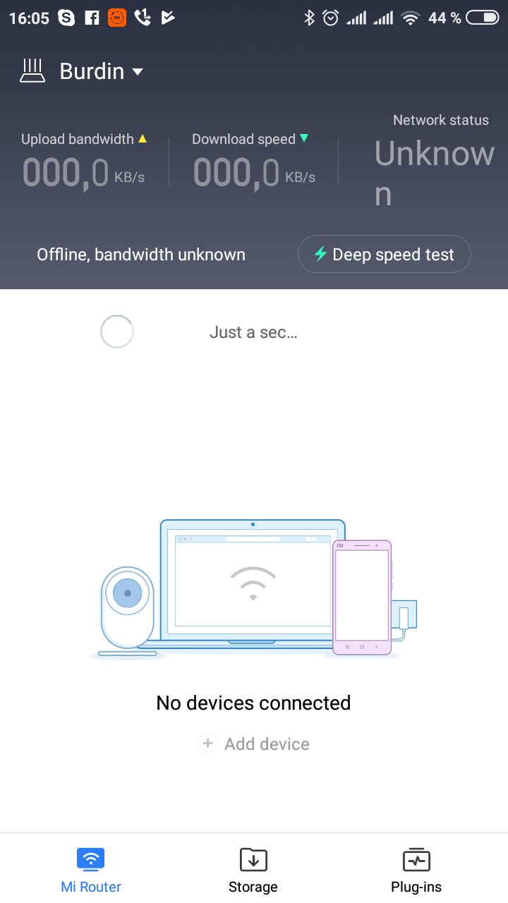 Then after several factory resets I managed to connect the application to the router, but it still doesn’t see the connected devices and when trying to enter any settings it cusses and can’t connect to the router (see picture below).