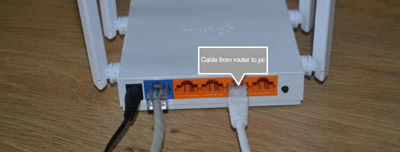 - With the help of an Ethernet cable. It is included with the router. We plug one end into one of the LAN ports on the router, and the other end into the network card on the PC or laptop.